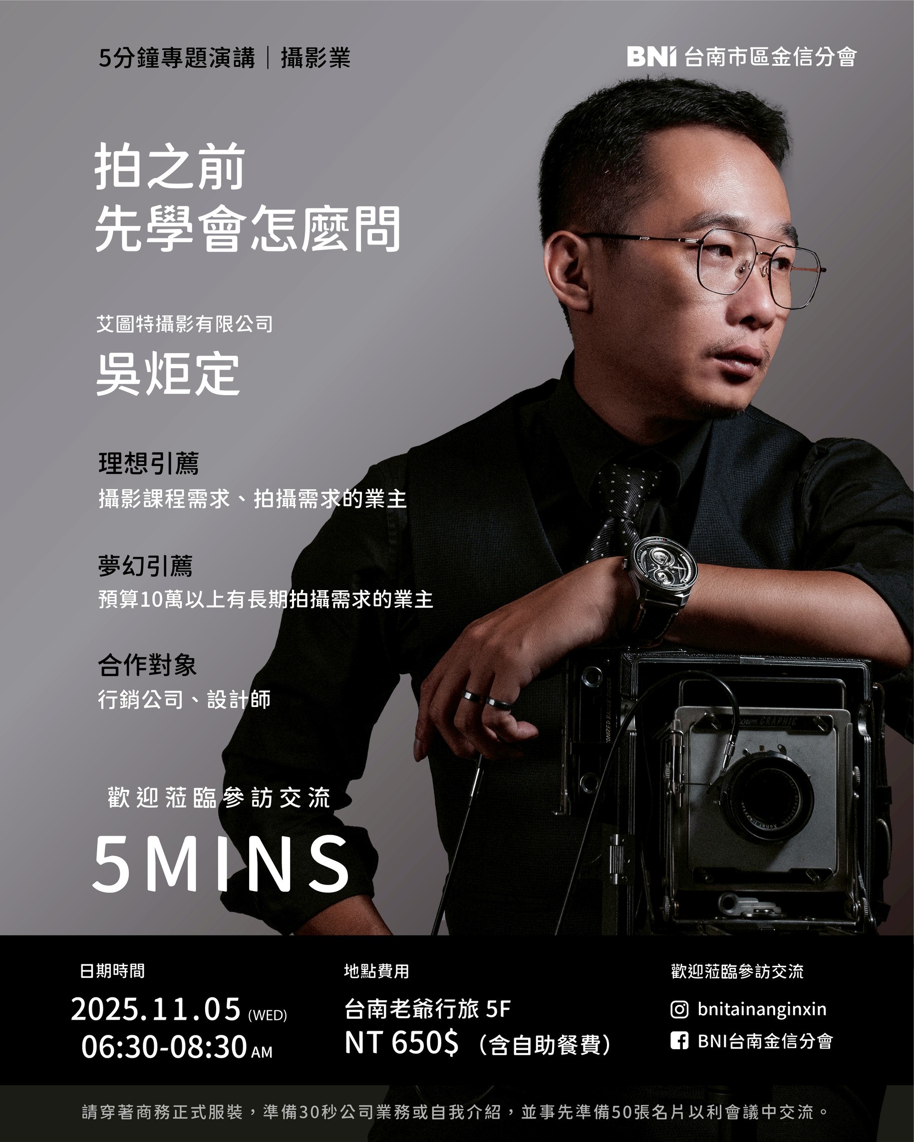#BNI金信分會 #攝影業 #艾圖特攝影 #品牌形象 #商業攝影 #台南講座