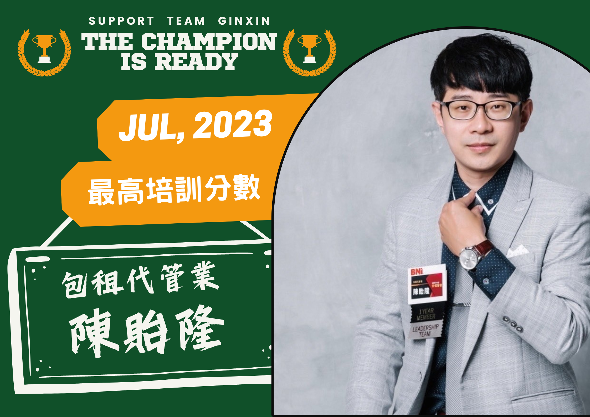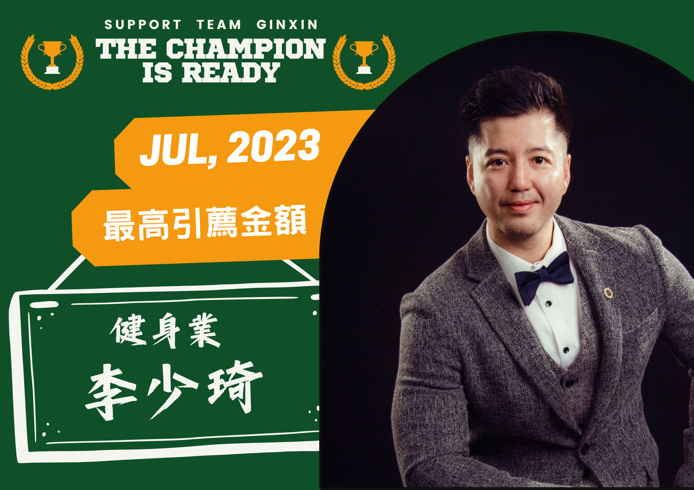 2023年七月最佳會員 | 最多引薦數-VIC、最多引薦金額-少琦、最多來賓數-慈芸、最高培訓-貽隆、最多1對1-冠文